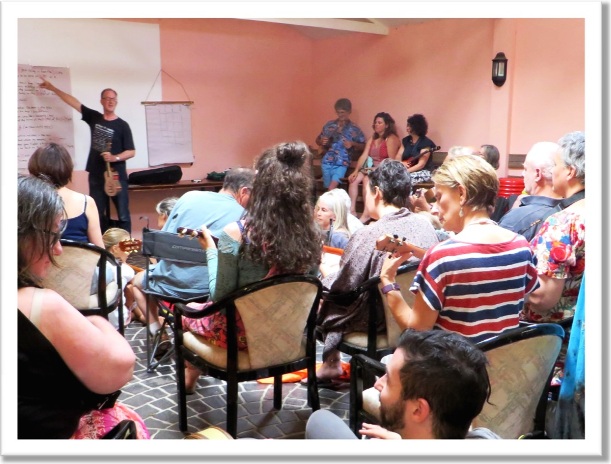 Ukulele workshopsBruce is an experienced ukulele workshop leader and group leader. Workshops can vary from a minimum of one hour to a series of sessions over several days, depending on the circumstances and setting. Workshops are designed for people with a range of experience and skills, from beginners to professionals, and can be tailored to suit a particular target group. More information here: Bruce Watson: Ukulele workshop & group leader/teacher View short video about Ukulele Workshops with Bruce Watson. Ukulele Fun with songs that don t suck   (All levels)Join the ukulele tsunami! It s the easiest, funnest instrument going, and you ll be playing a tune in 5 minutes. And easy tunes don t have to be dull and boring. Bruce is an experienced ukulele group leader of who knows how to make it easy and fun (including for more experienced players). I got Rhythm, Uke got rhythm   (Intermediate to experienced players)Add spice to your ukulele playing by breaking out of your usual strumming patterns. Playing ukulele is so much more fun and sounds so much more interesting and funky when you can vary the rhythms. And rhythms don t have to be complex to be effective and have impact. This workshop explores some simple but powerful rhythm patterns and techniques. Finger Pickin' Good!   (Intermediate to experienced players)Finger-picking chords rather than strumming them can bring out the richness and subtlety of the ukulele and add great variety to your playing. Picking out melodies is also a very useful skill, particularly in ensemble playing. This workshop will explore a number of picking patterns to accompany various songs, as well as guidelines on melody picking. Hapa Haole: Hawaii meets America   (Intermediate to experienced players)Explore the complex history of the US colonisation of Hawaii and the music that resulted from it as island culture met with Tin Pan Alley, creating the ukulele boom of the early 20th century. Hapa Haole means half-foreign, and the blend of language, images and musical styles produced some wonderful, memorable songs. Ukeoke with Bruce Watson   (All levels)Pick songs from a list of around 150 songs and Bruce will lead everybody playing and singing it together, with words and chords projected onto a screen, and a little instruction if needed. BYO uke or other instrument. |