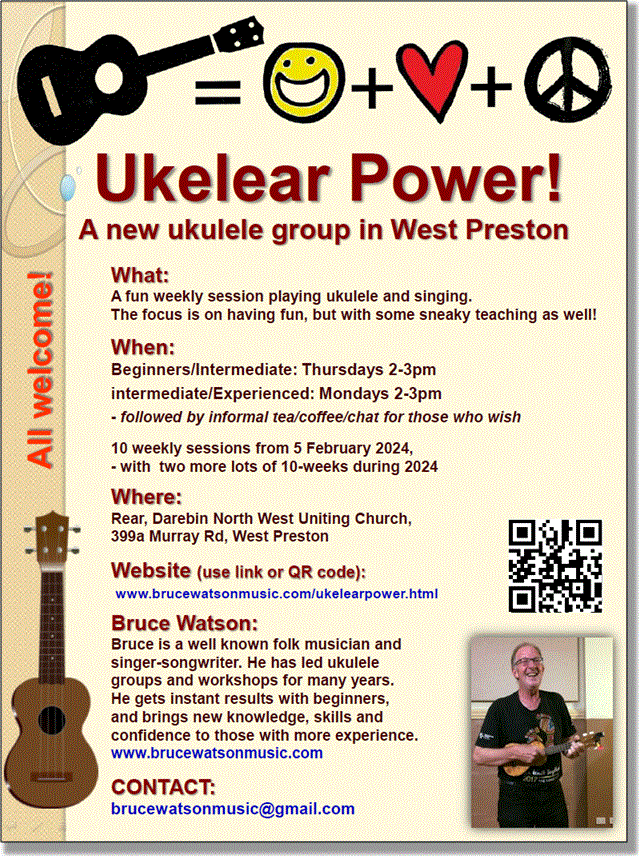 To view Ukelear Power's performance at the 2025 Melbourne Ukulele Festival, click on the picture, or here.